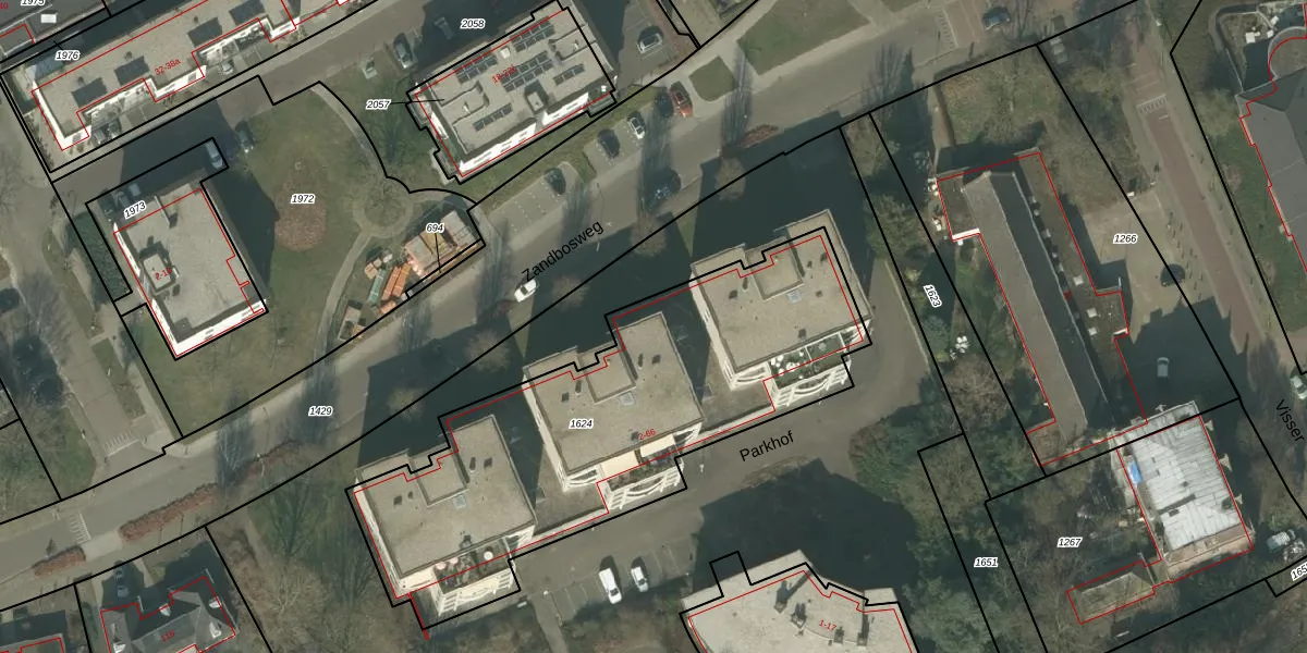 Het perceel waarop Parkhof 24 staat heeft een oppervlakte van 1980 m². Dit is een zeer groot perceel. De perceeloppervlakte wordt geregistreerd door het Kadaster. Gedetailleerde informatie over de maten van dit perceel kunt u vinden in het rapport Kadastrale kaart met maatvoering van Parkhof 24.