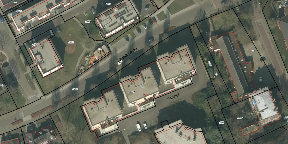 Het perceel waarop Parkhof 26 staat heeft een oppervlakte van 1980 m². Dit is een zeer groot perceel. De perceeloppervlakte wordt geregistreerd door het Kadaster. Gedetailleerde informatie over de maten van dit perceel kunt u vinden in het rapport Kadastrale kaart met maatvoering van Parkhof 26.