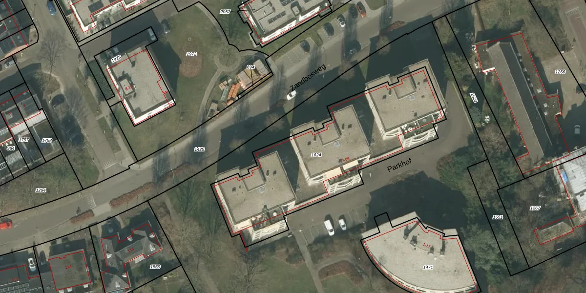 Het perceel waarop Parkhof 36 staat heeft een oppervlakte van 1980 m². Dit is een zeer groot perceel. De perceeloppervlakte wordt geregistreerd door het Kadaster. Gedetailleerde informatie over de maten van dit perceel kunt u vinden in het rapport Kadastrale kaart met maatvoering van Parkhof 36.