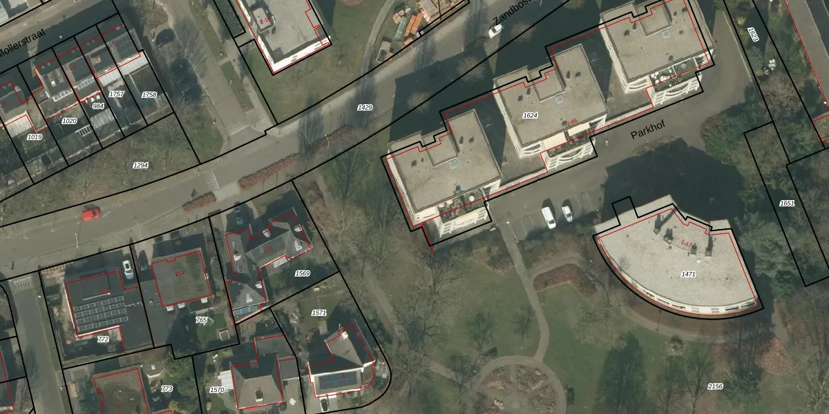 Het perceel waarop Parkhof 58 staat heeft een oppervlakte van 1980 m². Dit is een zeer groot perceel. De perceeloppervlakte wordt geregistreerd door het Kadaster. Gedetailleerde informatie over de maten van dit perceel kunt u vinden in het rapport Kadastrale kaart met maatvoering van Parkhof 58.