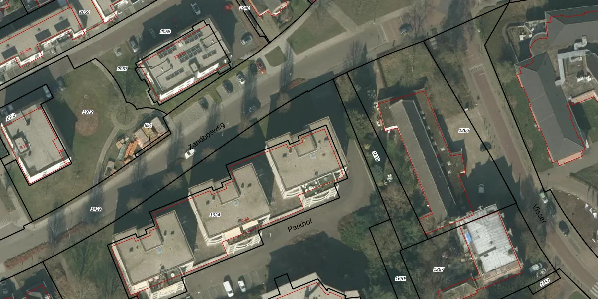 Het perceel waarop Parkhof 8 staat heeft een oppervlakte van 1980 m². Dit is een zeer groot perceel. De perceeloppervlakte wordt geregistreerd door het Kadaster. Gedetailleerde informatie over de maten van dit perceel kunt u vinden in het rapport Kadastrale kaart met maatvoering van Parkhof 8.