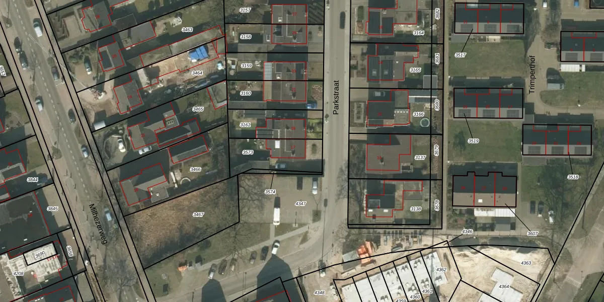 Gebruik de zoekbalk of klik op een perceel voor informatie over de adressen binnen dit perceel.