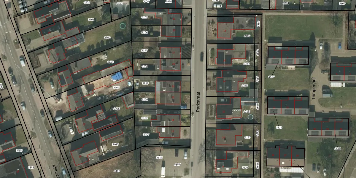 Het perceel waarop Parkstraat 23 staat heeft een oppervlakte van 305 m². Dit is een groot perceel. De perceeloppervlakte wordt geregistreerd door het Kadaster. Gedetailleerde informatie over de maten van dit perceel kunt u vinden in het rapport Kadastrale kaart met maatvoering van Parkstraat 23.