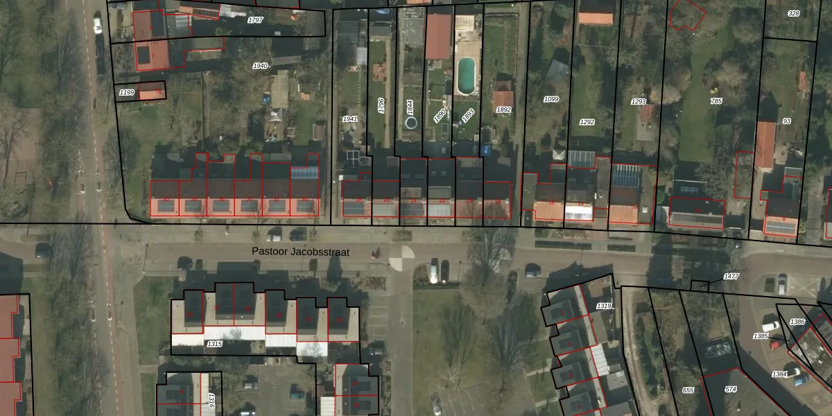 Het perceel waarop Pastoor Jacobsstraat 24 staat heeft een oppervlakte van 355 m². Dit is een groot perceel. De perceeloppervlakte wordt geregistreerd door het Kadaster. Gedetailleerde informatie over de maten van dit perceel kunt u vinden in het rapport Kadastrale kaart met maatvoering van Pastoor Jacobsstraat 24.