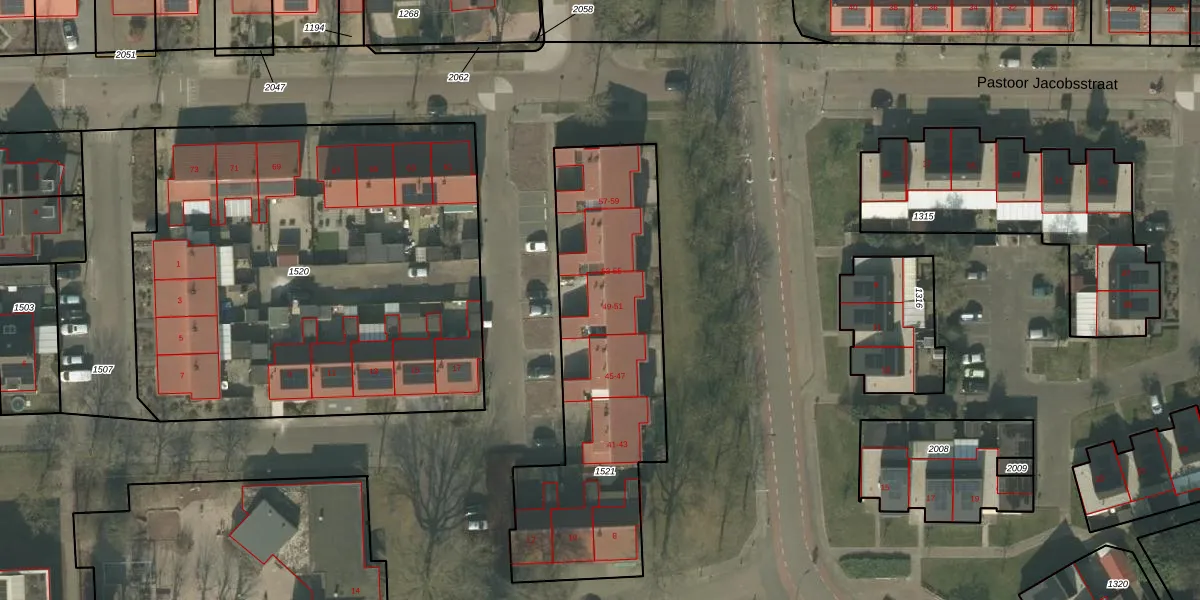 Het perceel waarop Pastoor Jacobsstraat 49 staat heeft een oppervlakte van 1310 m². Dit is een zeer groot perceel. De perceeloppervlakte wordt geregistreerd door het Kadaster. Gedetailleerde informatie over de maten van dit perceel kunt u vinden in het rapport Kadastrale kaart met maatvoering van Pastoor Jacobsstraat 49.