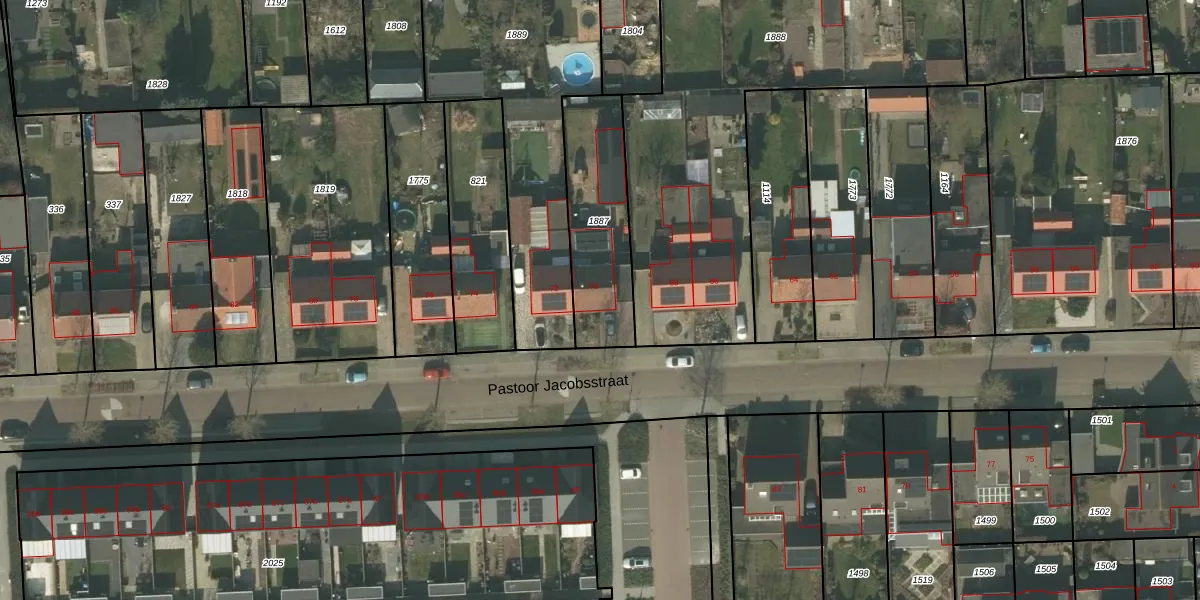 Het perceel waarop Pastoor Jacobsstraat 70 staat heeft een oppervlakte van 425 m². Dit is een groot perceel. De perceeloppervlakte wordt geregistreerd door het Kadaster. Gedetailleerde informatie over de maten van dit perceel kunt u vinden in het rapport Kadastrale kaart met maatvoering van Pastoor Jacobsstraat 70.