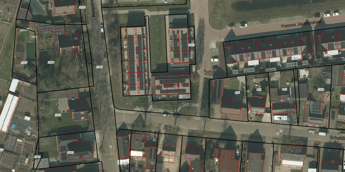 Het perceel waarop Pastoor Jacobsstraat 99-a staat heeft een oppervlakte van 1560 m². Dit is een zeer groot perceel. De perceeloppervlakte wordt geregistreerd door het Kadaster. Gedetailleerde informatie over de maten van dit perceel kunt u vinden in het rapport Kadastrale kaart met maatvoering van Pastoor Jacobsstraat 99-a.