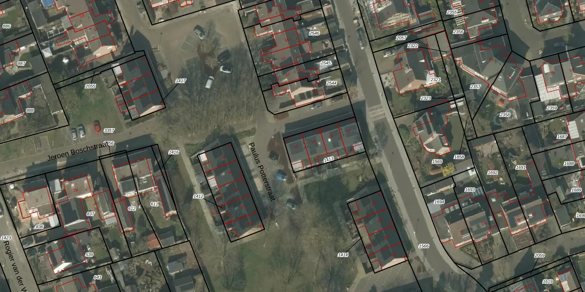 Paulus Potterstraat 16 is gelegen op kadastraal perceel DNE00N1413. Deze kadastrale aanduiding is uniek en wordt gebruikt door het Kadaster om eigendomsrechten en andere zakelijke rechten vast te leggen. Het perceel maakt onderdeel uit van de kadastrale gemeente Deurne.