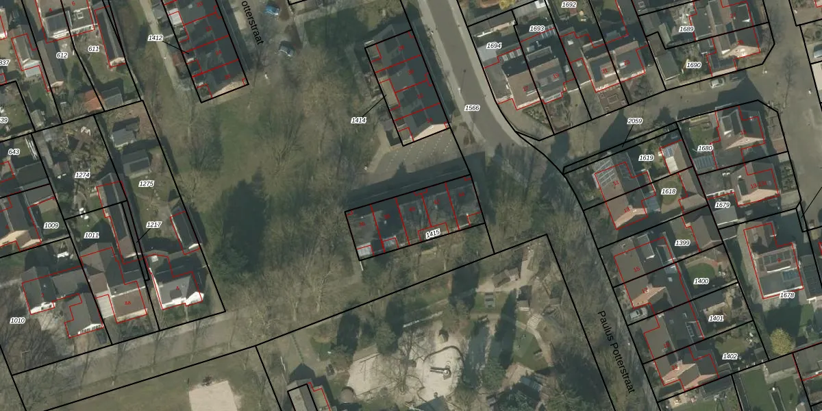 Paulus Potterstraat 40 is gelegen op kadastraal perceel DNE00N1415. Deze kadastrale aanduiding is uniek en wordt gebruikt door het Kadaster om eigendomsrechten en andere zakelijke rechten vast te leggen. Het perceel maakt onderdeel uit van de kadastrale gemeente Deurne.