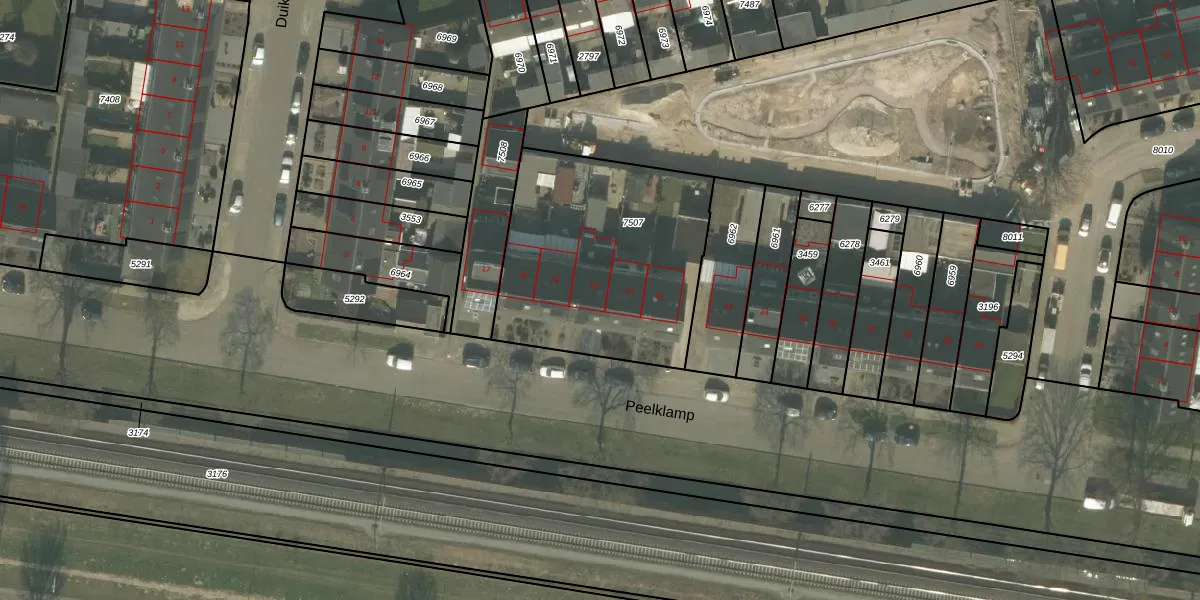 Het perceel waarop Peelklamp 20 staat heeft een oppervlakte van 1062 m². Dit is een zeer groot perceel. De perceeloppervlakte wordt geregistreerd door het Kadaster. Gedetailleerde informatie over de maten van dit perceel kunt u vinden in het rapport Kadastrale kaart met maatvoering van Peelklamp 20.