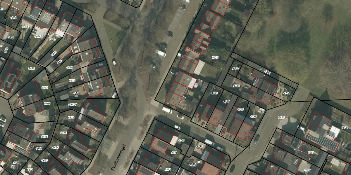 Peellandsingel 22 is gelegen op kadastraal perceel DNE00L5214. Deze kadastrale aanduiding is uniek en wordt gebruikt door het Kadaster om eigendomsrechten en andere zakelijke rechten vast te leggen. Het perceel maakt onderdeel uit van de kadastrale gemeente Deurne.