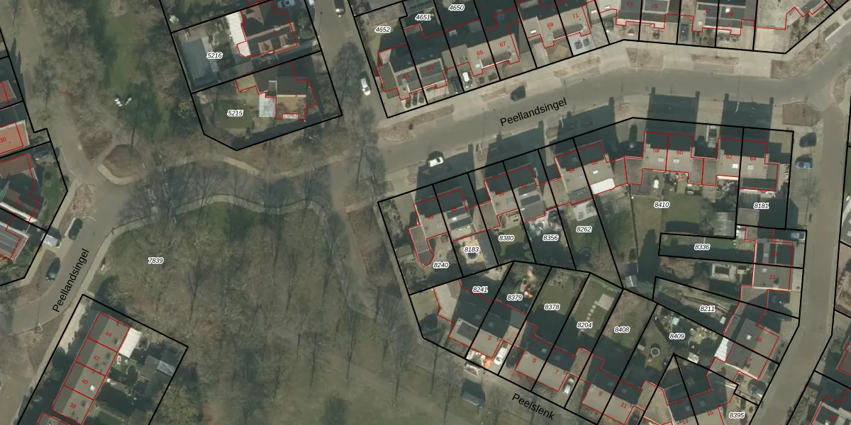 Het perceel waarop Peellandsingel 46 staat heeft een oppervlakte van 310 m². Dit is een groot perceel. De perceeloppervlakte wordt geregistreerd door het Kadaster. Gedetailleerde informatie over de maten van dit perceel kunt u vinden in het rapport Kadastrale kaart met maatvoering van Peellandsingel 46.