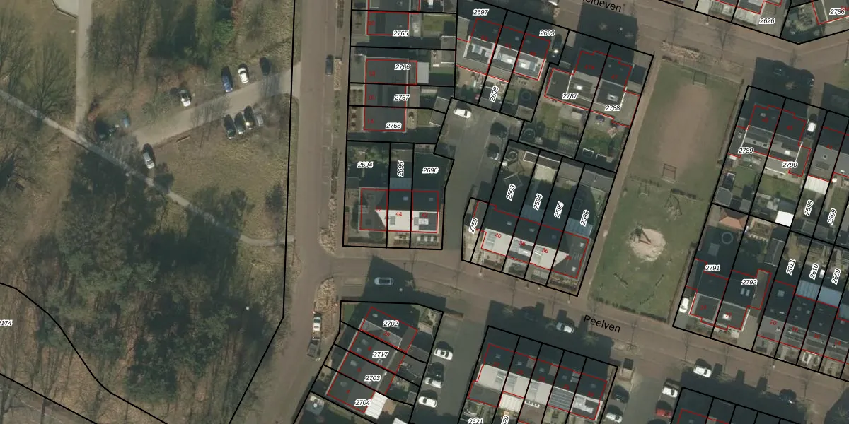 Het perceel waarop Peelven 42 staat heeft een oppervlakte van 190 m². Dit is een middelgroot perceel. De perceeloppervlakte wordt geregistreerd door het Kadaster. Gedetailleerde informatie over de maten van dit perceel kunt u vinden in het rapport Kadastrale kaart met maatvoering van Peelven 42.