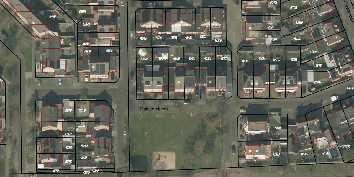 Pinksterbloem 9 is gelegen op kadastraal perceel DNE00C3798. Deze kadastrale aanduiding is uniek en wordt gebruikt door het Kadaster om eigendomsrechten en andere zakelijke rechten vast te leggen. Het perceel maakt onderdeel uit van de kadastrale gemeente Deurne.