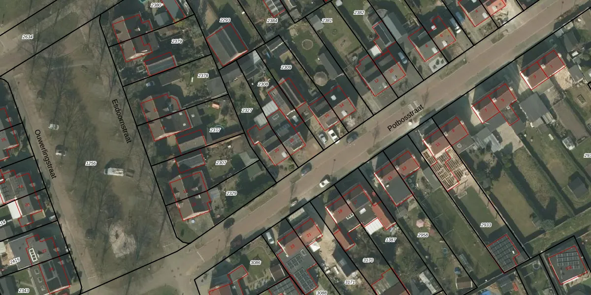 Het perceel waarop Potbosstraat 18 staat heeft een oppervlakte van 390 m². Dit is een groot perceel. De perceeloppervlakte wordt geregistreerd door het Kadaster. Gedetailleerde informatie over de maten van dit perceel kunt u vinden in het rapport Kadastrale kaart met maatvoering van Potbosstraat 18.