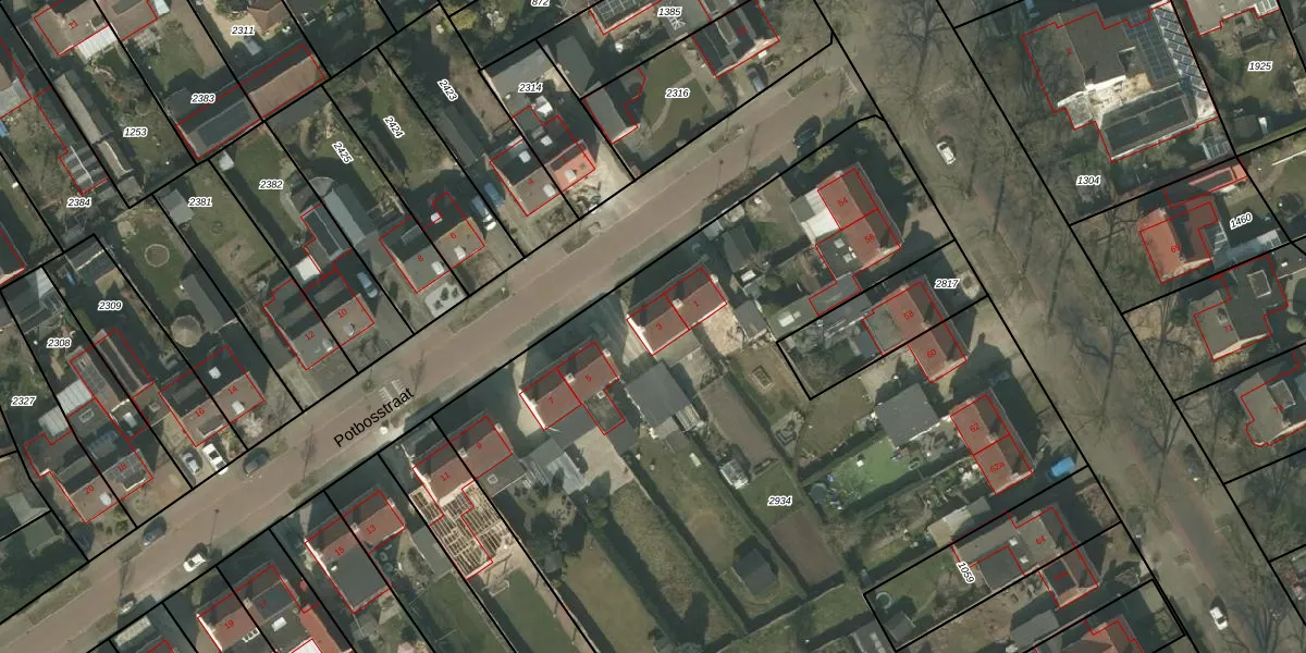 Het perceel waarop Potbosstraat 3 staat heeft een oppervlakte van 6955 m². Dit is een zeer groot perceel. De perceeloppervlakte wordt geregistreerd door het Kadaster. Gedetailleerde informatie over de maten van dit perceel kunt u vinden in het rapport Kadastrale kaart met maatvoering van Potbosstraat 3.