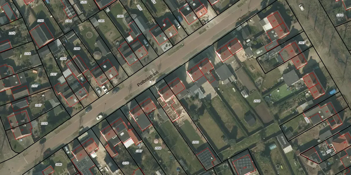Het perceel waarop Potbosstraat 9 staat heeft een oppervlakte van 6955 m². Dit is een zeer groot perceel. De perceeloppervlakte wordt geregistreerd door het Kadaster. Gedetailleerde informatie over de maten van dit perceel kunt u vinden in het rapport Kadastrale kaart met maatvoering van Potbosstraat 9.