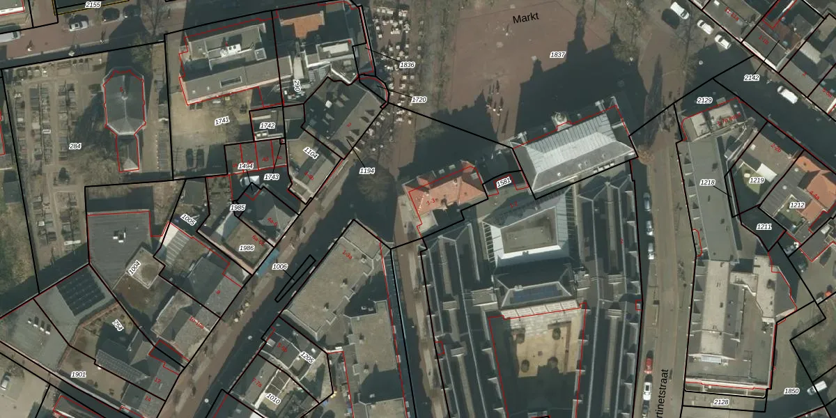 Het perceel waarop Raadhuisstraat 1 staat heeft een oppervlakte van 4358 m². Dit is een zeer groot perceel. De perceeloppervlakte wordt geregistreerd door het Kadaster. Gedetailleerde informatie over de maten van dit perceel kunt u vinden in het rapport Kadastrale kaart met maatvoering van Raadhuisstraat 1.