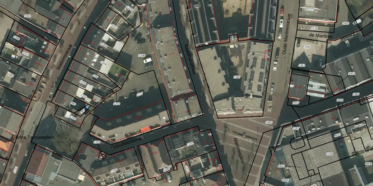 Raadhuisstraat 74 is gelegen op kadastraal perceel DNE00K1206. Deze kadastrale aanduiding is uniek en wordt gebruikt door het Kadaster om eigendomsrechten en andere zakelijke rechten vast te leggen. Het perceel maakt onderdeel uit van de kadastrale gemeente Deurne.