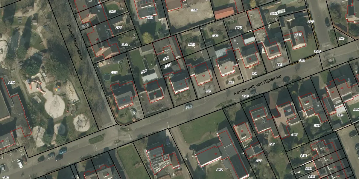 Het perceel waarop Rembrandt van Rijnstraat 17 staat heeft een oppervlakte van 338 m². Dit is een groot perceel. De perceeloppervlakte wordt geregistreerd door het Kadaster. Gedetailleerde informatie over de maten van dit perceel kunt u vinden in het rapport Kadastrale kaart met maatvoering van Rembrandt van Rijnstraat 17.
