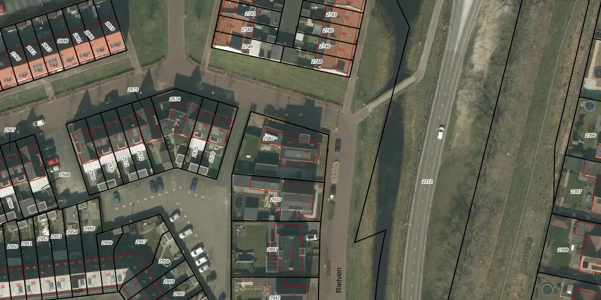 Het perceel waarop Rietven 45 staat heeft een oppervlakte van 540 m². Dit is een groot perceel. De perceeloppervlakte wordt geregistreerd door het Kadaster. Gedetailleerde informatie over de maten van dit perceel kunt u vinden in het rapport Kadastrale kaart met maatvoering van Rietven 45.