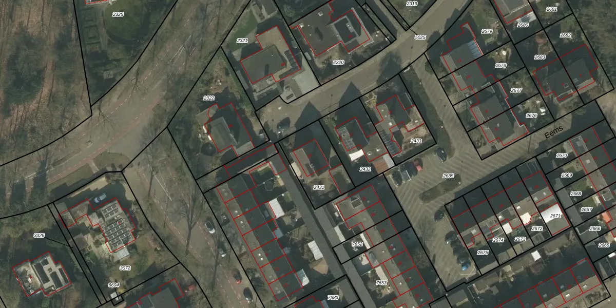 Gebruik de zoekbalk of klik op een perceel voor informatie over de adressen binnen dit perceel.
