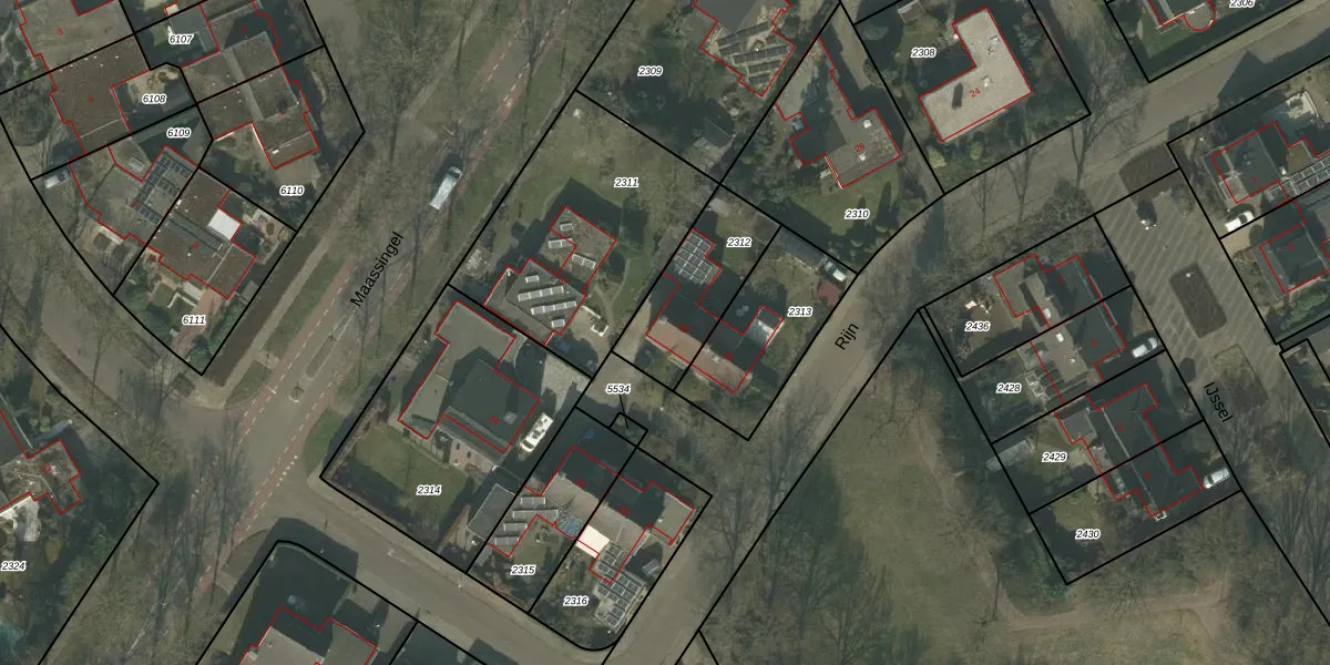 Gebruik de zoekbalk of klik op een perceel voor informatie over de adressen binnen dit perceel.