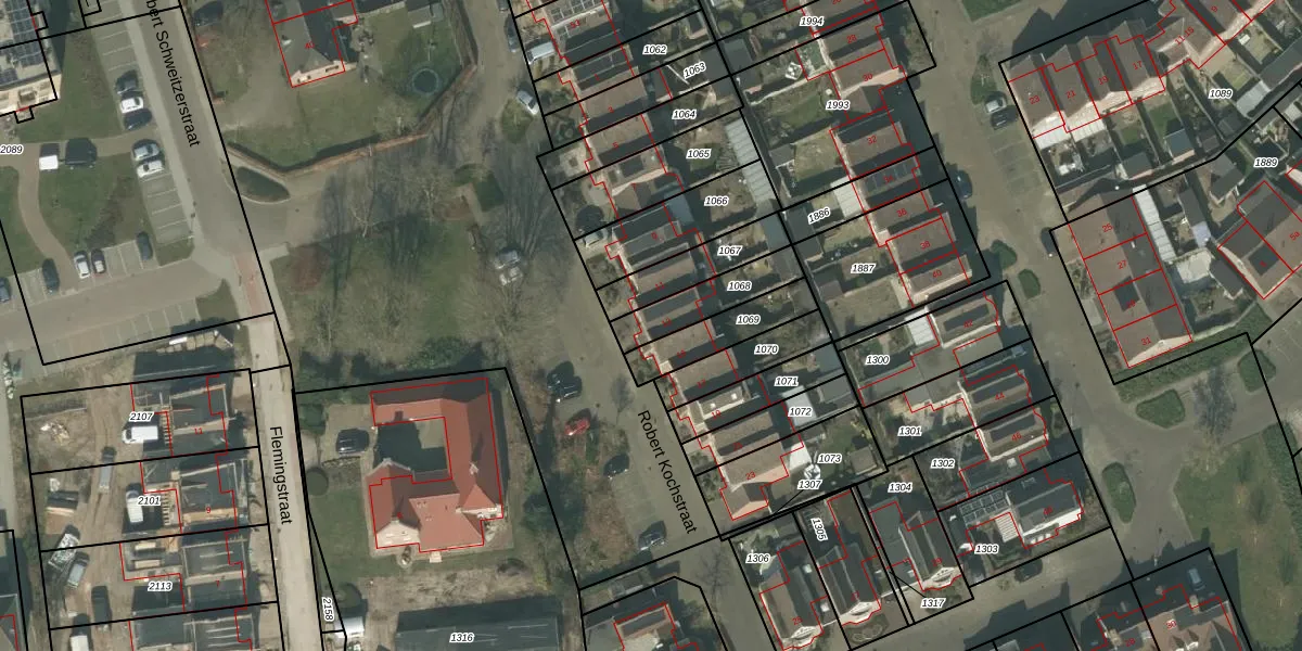 Gebruik de zoekbalk of klik op een perceel voor informatie over de adressen binnen dit perceel.