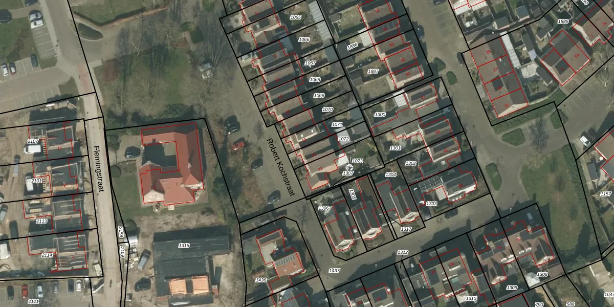 Robert Kochstraat 21 is gelegen op kadastraal perceel DNE00K1072. Deze kadastrale aanduiding is uniek en wordt gebruikt door het Kadaster om eigendomsrechten en andere zakelijke rechten vast te leggen. Het perceel maakt onderdeel uit van de kadastrale gemeente Deurne.