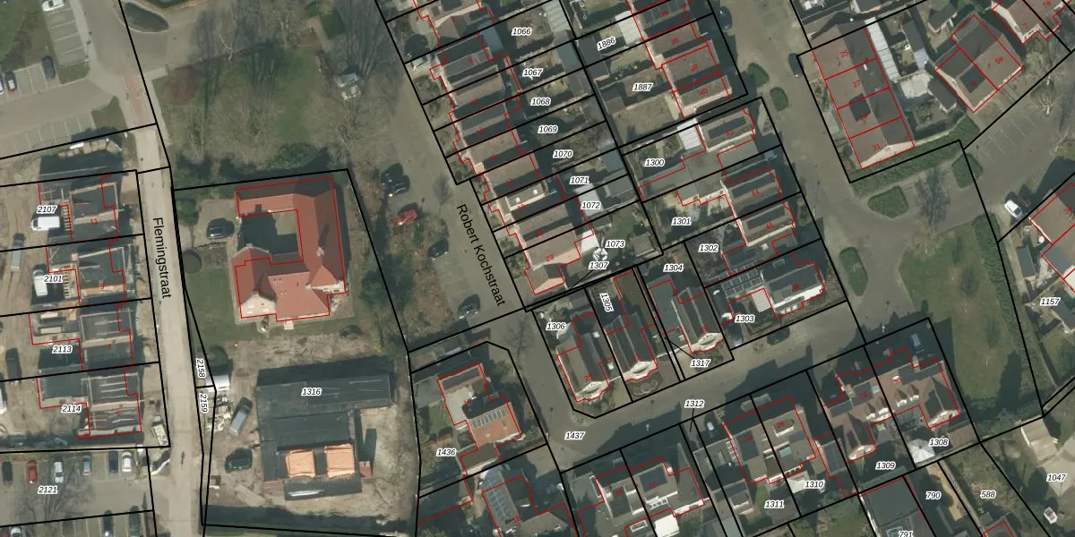 Het perceel waarop Robert Kochstraat 23 staat heeft een oppervlakte van 290 m². Dit is een middelgroot perceel. De perceeloppervlakte wordt geregistreerd door het Kadaster. Gedetailleerde informatie over de maten van dit perceel kunt u vinden in het rapport Kadastrale kaart met maatvoering van Robert Kochstraat 23.