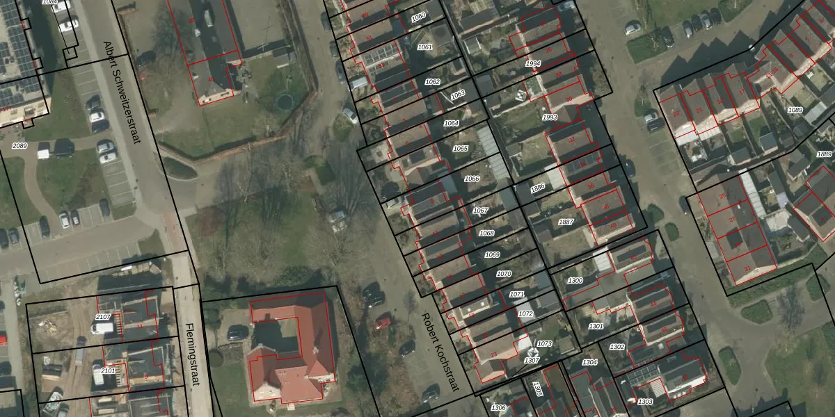 Gebruik de zoekbalk of klik op een perceel voor informatie over de adressen binnen dit perceel.