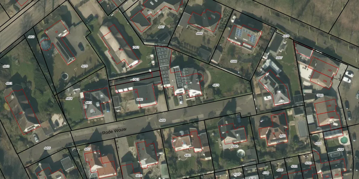 Rode Wouw 5 is gelegen op kadastraal perceel DNE00L4473. Deze kadastrale aanduiding is uniek en wordt gebruikt door het Kadaster om eigendomsrechten en andere zakelijke rechten vast te leggen. Het perceel maakt onderdeel uit van de kadastrale gemeente Deurne.