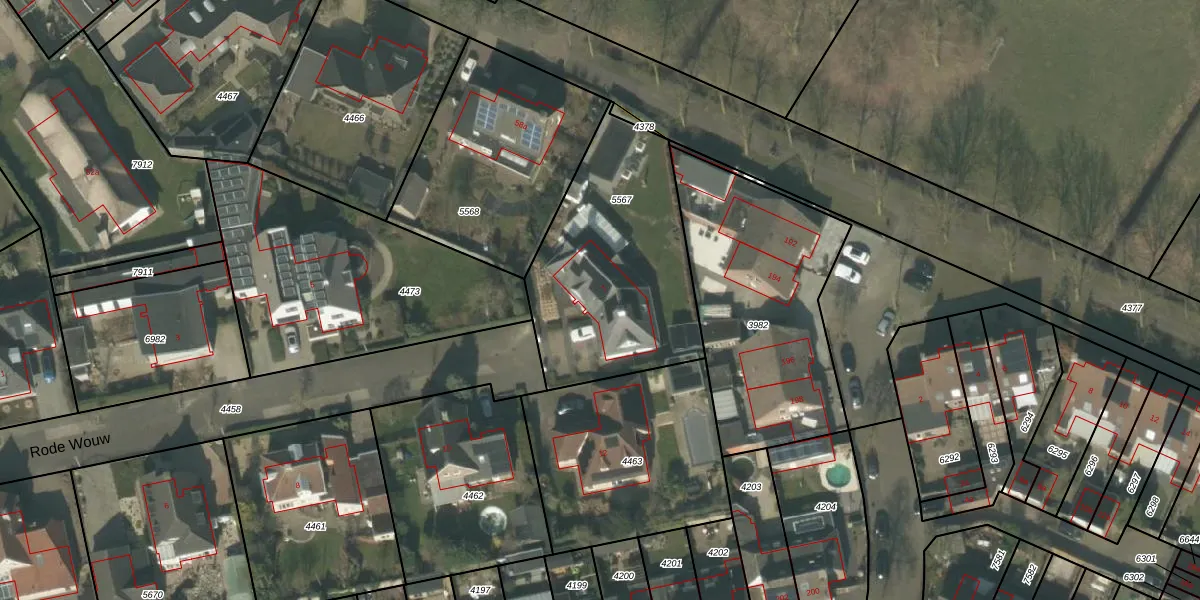 Rode Wouw 7 is gelegen op kadastraal perceel DNE00L5567. Deze kadastrale aanduiding is uniek en wordt gebruikt door het Kadaster om eigendomsrechten en andere zakelijke rechten vast te leggen. Het perceel maakt onderdeel uit van de kadastrale gemeente Deurne.