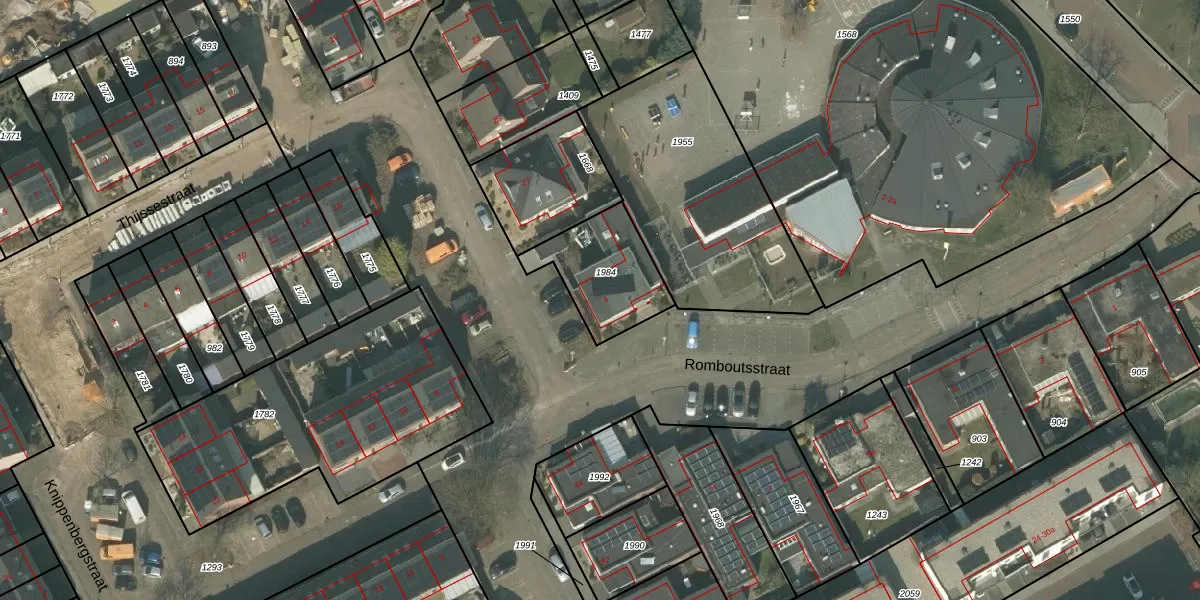 Romboutsstraat 4 is gelegen op kadastraal perceel DNE00K1984. Deze kadastrale aanduiding is uniek en wordt gebruikt door het Kadaster om eigendomsrechten en andere zakelijke rechten vast te leggen. Het perceel maakt onderdeel uit van de kadastrale gemeente Deurne.