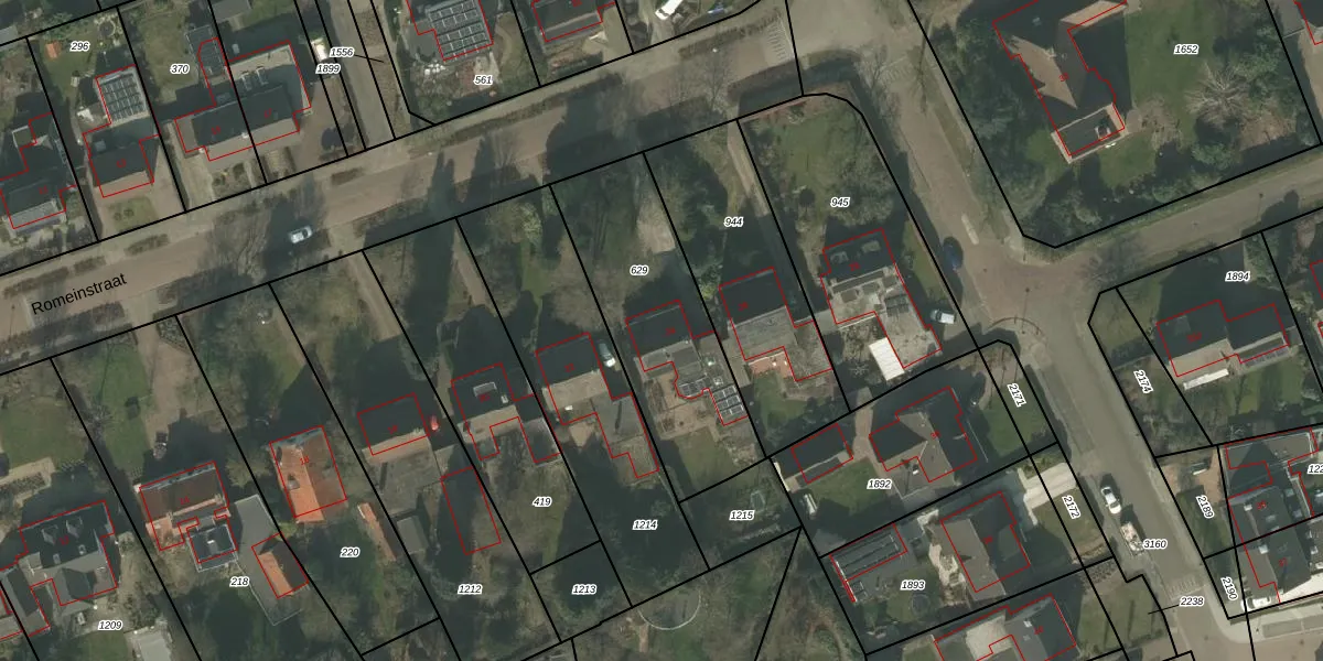 Het perceel waarop Romeinstraat 24 staat heeft een oppervlakte van 763 m². Dit is een groot perceel. De perceeloppervlakte wordt geregistreerd door het Kadaster. Gedetailleerde informatie over de maten van dit perceel kunt u vinden in het rapport Kadastrale kaart met maatvoering van Romeinstraat 24.
