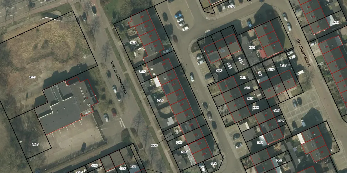 Roothaertstraat 112 is gelegen op kadastraal perceel DNE00L7644. Deze kadastrale aanduiding is uniek en wordt gebruikt door het Kadaster om eigendomsrechten en andere zakelijke rechten vast te leggen. Het perceel maakt onderdeel uit van de kadastrale gemeente Deurne.