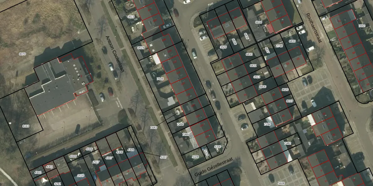 Roothaertstraat 118 is gelegen op kadastraal perceel DNE00L7644. Deze kadastrale aanduiding is uniek en wordt gebruikt door het Kadaster om eigendomsrechten en andere zakelijke rechten vast te leggen. Het perceel maakt onderdeel uit van de kadastrale gemeente Deurne.