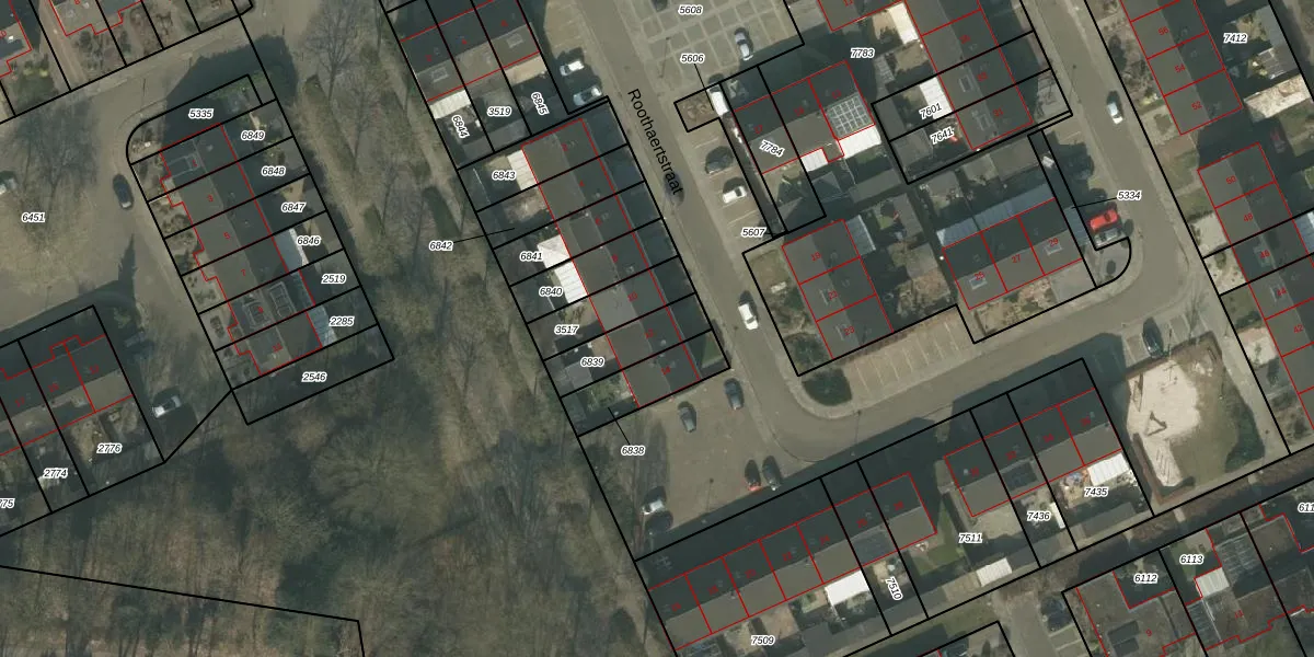 Roothaertstraat 12 is gelegen op kadastraal perceel DNE00L6839. Deze kadastrale aanduiding is uniek en wordt gebruikt door het Kadaster om eigendomsrechten en andere zakelijke rechten vast te leggen. Het perceel maakt onderdeel uit van de kadastrale gemeente Deurne.