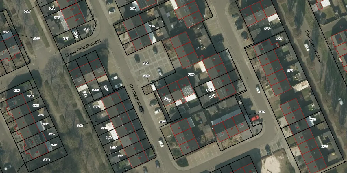 Roothaertstraat 15 is gelegen op kadastraal perceel DNE00L7783. Deze kadastrale aanduiding is uniek en wordt gebruikt door het Kadaster om eigendomsrechten en andere zakelijke rechten vast te leggen. Het perceel maakt onderdeel uit van de kadastrale gemeente Deurne.
