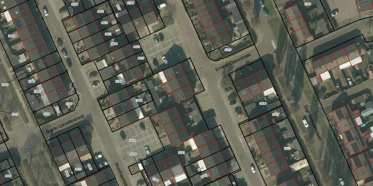 Het perceel waarop Roothaertstraat 39 staat heeft een oppervlakte van 3167 m². Dit is een zeer groot perceel. De perceeloppervlakte wordt geregistreerd door het Kadaster. Gedetailleerde informatie over de maten van dit perceel kunt u vinden in het rapport Kadastrale kaart met maatvoering van Roothaertstraat 39.