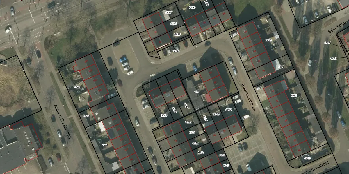 Het perceel waarop Roothaertstraat 63 staat heeft een oppervlakte van 187 m². Dit is een middelgroot perceel. De perceeloppervlakte wordt geregistreerd door het Kadaster. Gedetailleerde informatie over de maten van dit perceel kunt u vinden in het rapport Kadastrale kaart met maatvoering van Roothaertstraat 63.
