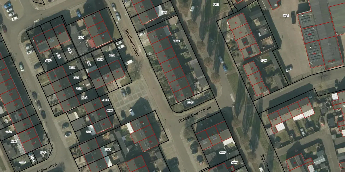 Roothaertstraat 64 is gelegen op kadastraal perceel DNE00L7692. Deze kadastrale aanduiding is uniek en wordt gebruikt door het Kadaster om eigendomsrechten en andere zakelijke rechten vast te leggen. Het perceel maakt onderdeel uit van de kadastrale gemeente Deurne.