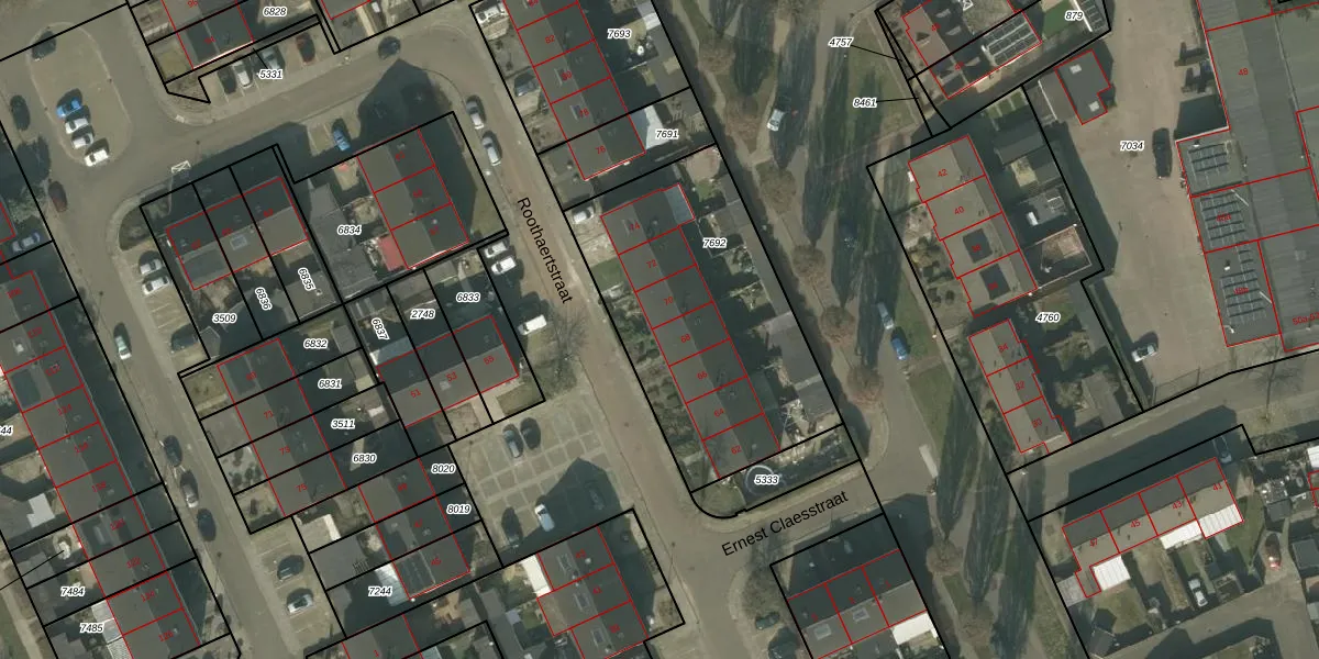 Roothaertstraat 68 is gelegen op kadastraal perceel DNE00L7692. Deze kadastrale aanduiding is uniek en wordt gebruikt door het Kadaster om eigendomsrechten en andere zakelijke rechten vast te leggen. Het perceel maakt onderdeel uit van de kadastrale gemeente Deurne.