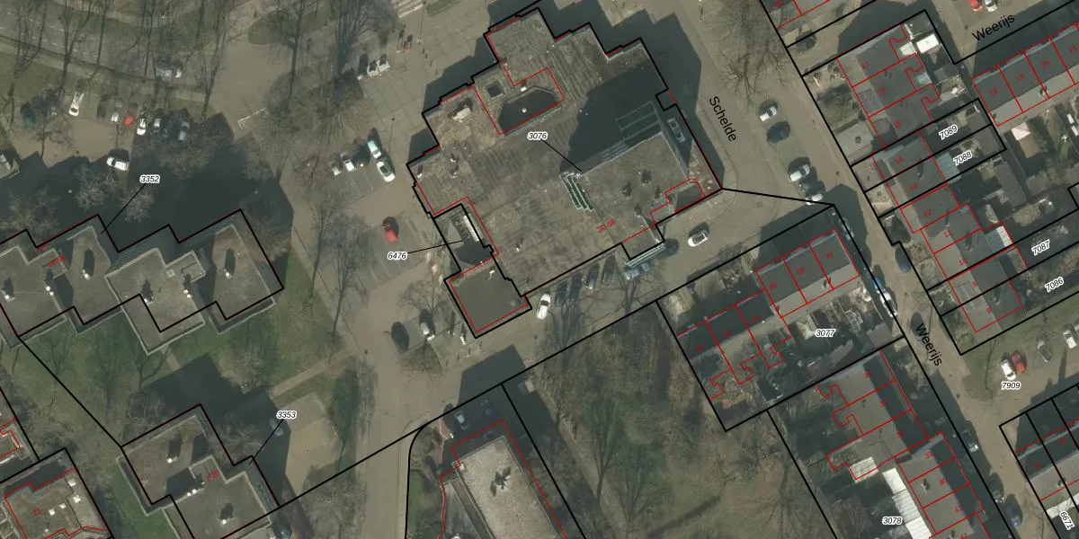 Het perceel waarop Schelde 50 staat heeft een oppervlakte van 1817 m². Dit is een zeer groot perceel. De perceeloppervlakte wordt geregistreerd door het Kadaster. Gedetailleerde informatie over de maten van dit perceel kunt u vinden in het rapport Kadastrale kaart met maatvoering van Schelde 50.