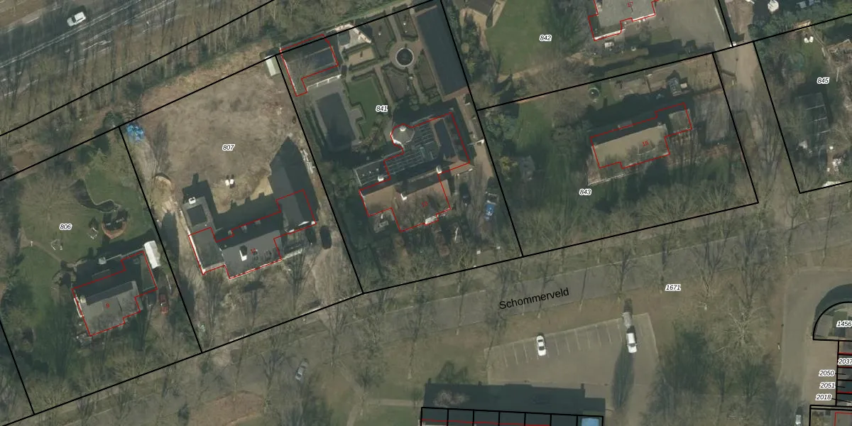 Het perceel waarop Schommerveld 13 staat heeft een oppervlakte van 2447 m². Dit is een zeer groot perceel. De perceeloppervlakte wordt geregistreerd door het Kadaster. Gedetailleerde informatie over de maten van dit perceel kunt u vinden in het rapport Kadastrale kaart met maatvoering van Schommerveld 13.