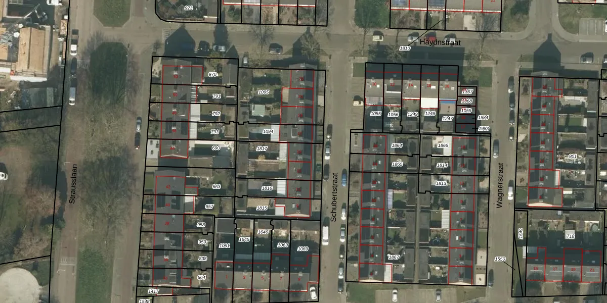 Het perceel waarop Schubertstraat 15 staat heeft een oppervlakte van 350 m². Dit is een groot perceel. De perceeloppervlakte wordt geregistreerd door het Kadaster. Gedetailleerde informatie over de maten van dit perceel kunt u vinden in het rapport Kadastrale kaart met maatvoering van Schubertstraat 15.