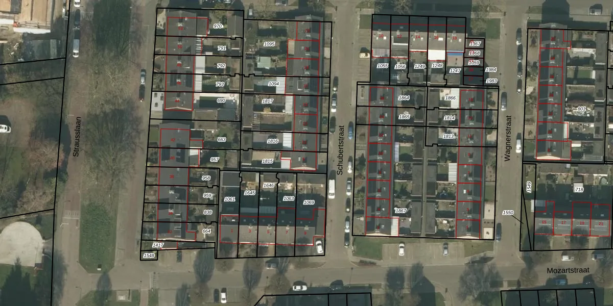 Het perceel waarop Schubertstraat 9 staat heeft een oppervlakte van 200 m². Dit is een middelgroot perceel. De perceeloppervlakte wordt geregistreerd door het Kadaster. Gedetailleerde informatie over de maten van dit perceel kunt u vinden in het rapport Kadastrale kaart met maatvoering van Schubertstraat 9.