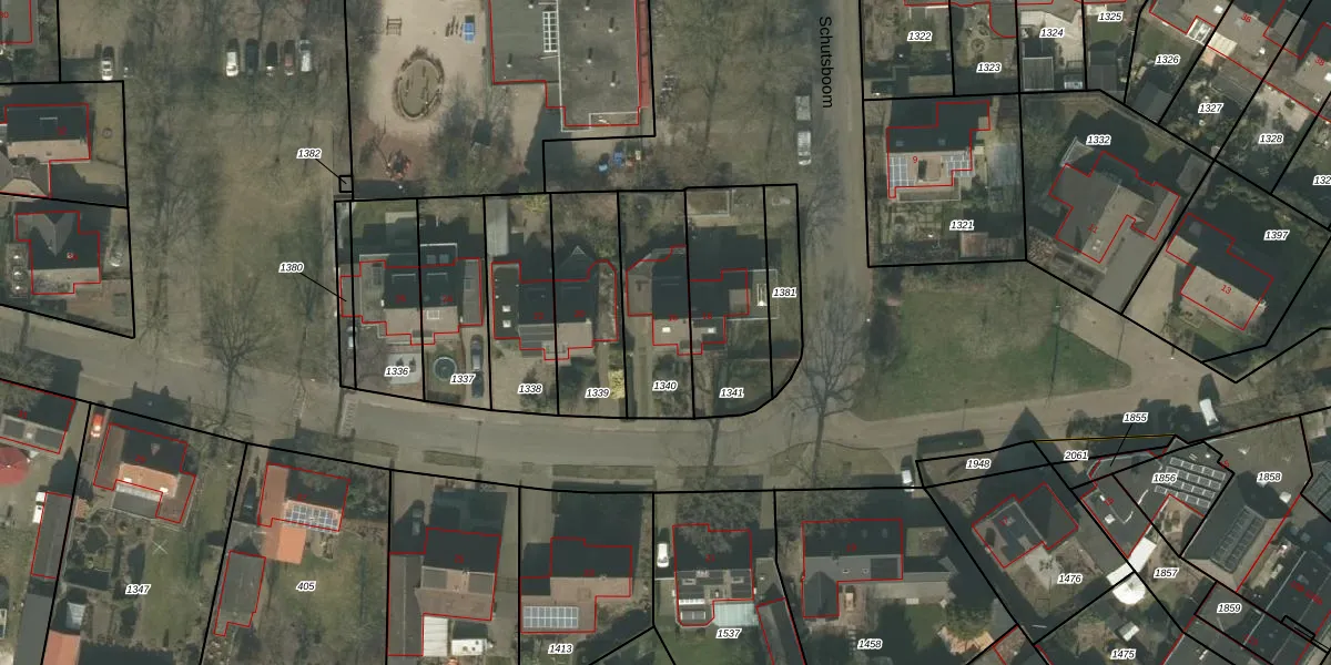 Het perceel waarop Schutsboom 18 staat heeft een oppervlakte van 341 m². Dit is een groot perceel. De perceeloppervlakte wordt geregistreerd door het Kadaster. Gedetailleerde informatie over de maten van dit perceel kunt u vinden in het rapport Kadastrale kaart met maatvoering van Schutsboom 18.