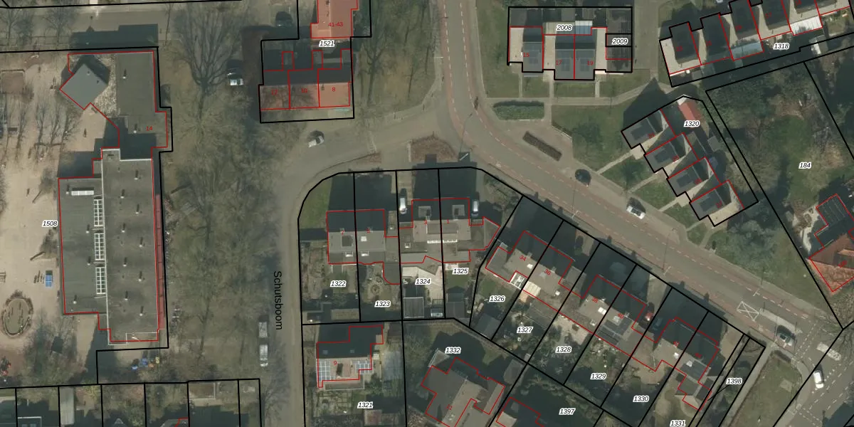 Het perceel waarop Schutsboom 3 staat heeft een oppervlakte van 351 m². Dit is een groot perceel. De perceeloppervlakte wordt geregistreerd door het Kadaster. Gedetailleerde informatie over de maten van dit perceel kunt u vinden in het rapport Kadastrale kaart met maatvoering van Schutsboom 3.