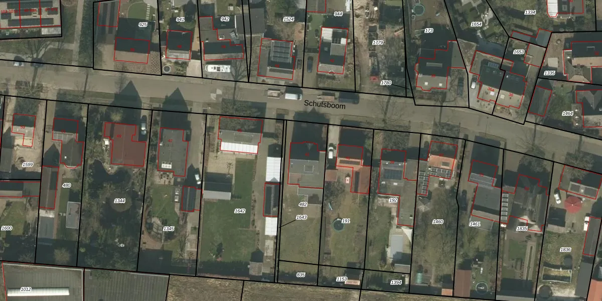 Het perceel waarop Schutsboom 43 staat heeft een oppervlakte van 627 m². Dit is een groot perceel. De perceeloppervlakte wordt geregistreerd door het Kadaster. Gedetailleerde informatie over de maten van dit perceel kunt u vinden in het rapport Kadastrale kaart met maatvoering van Schutsboom 43.